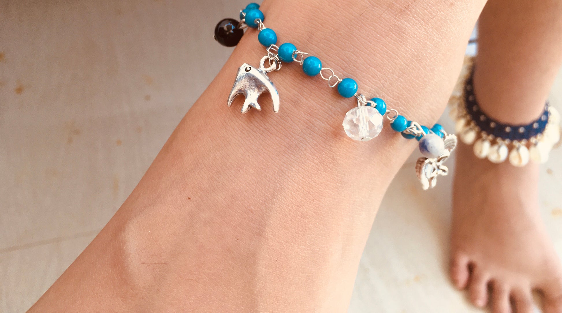 Wrap your ankle in this gorgeous blue , multi crystal anklet.