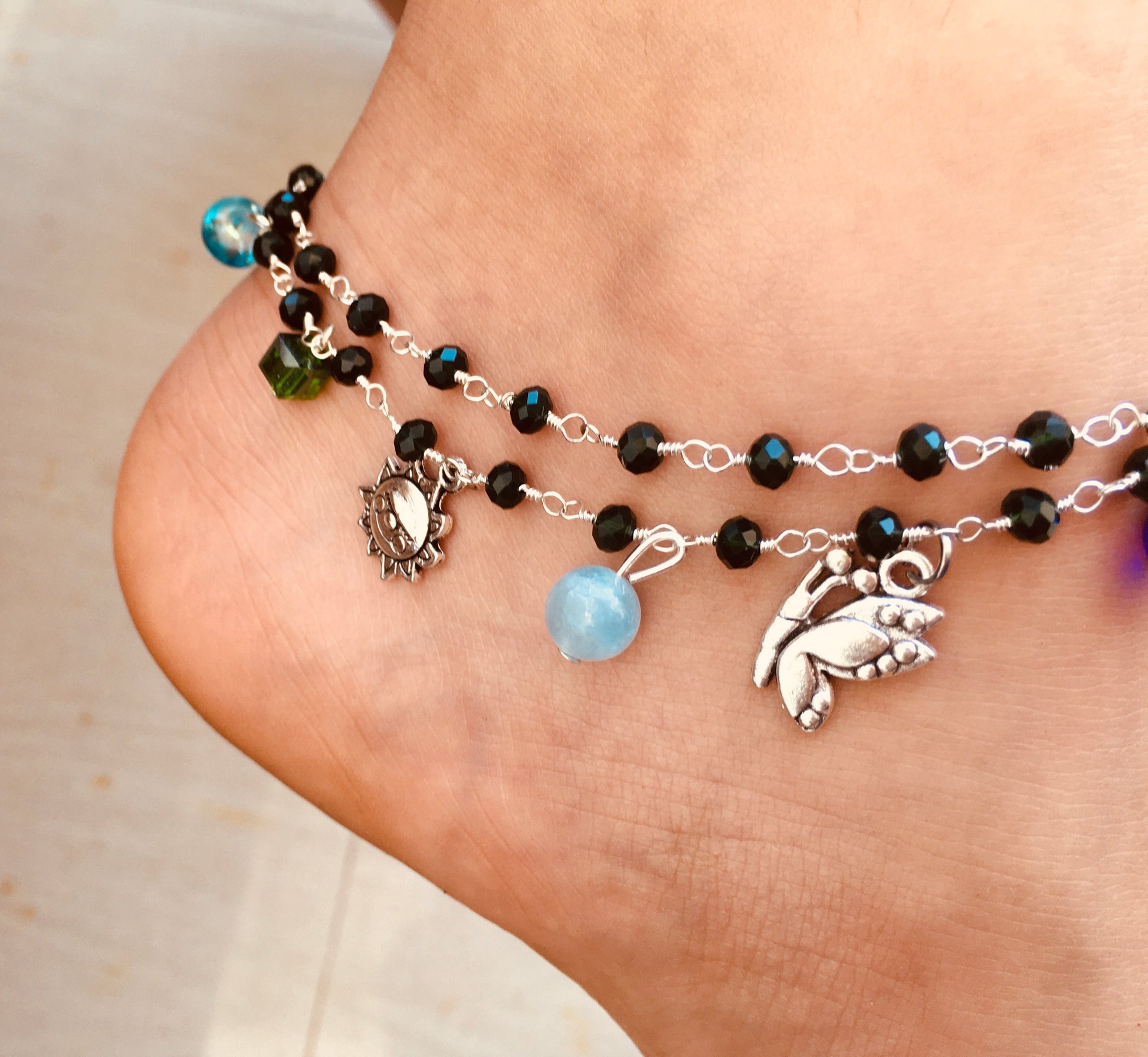 Dance like a leaf on a windy days with this beautiful multi crystal anklet.