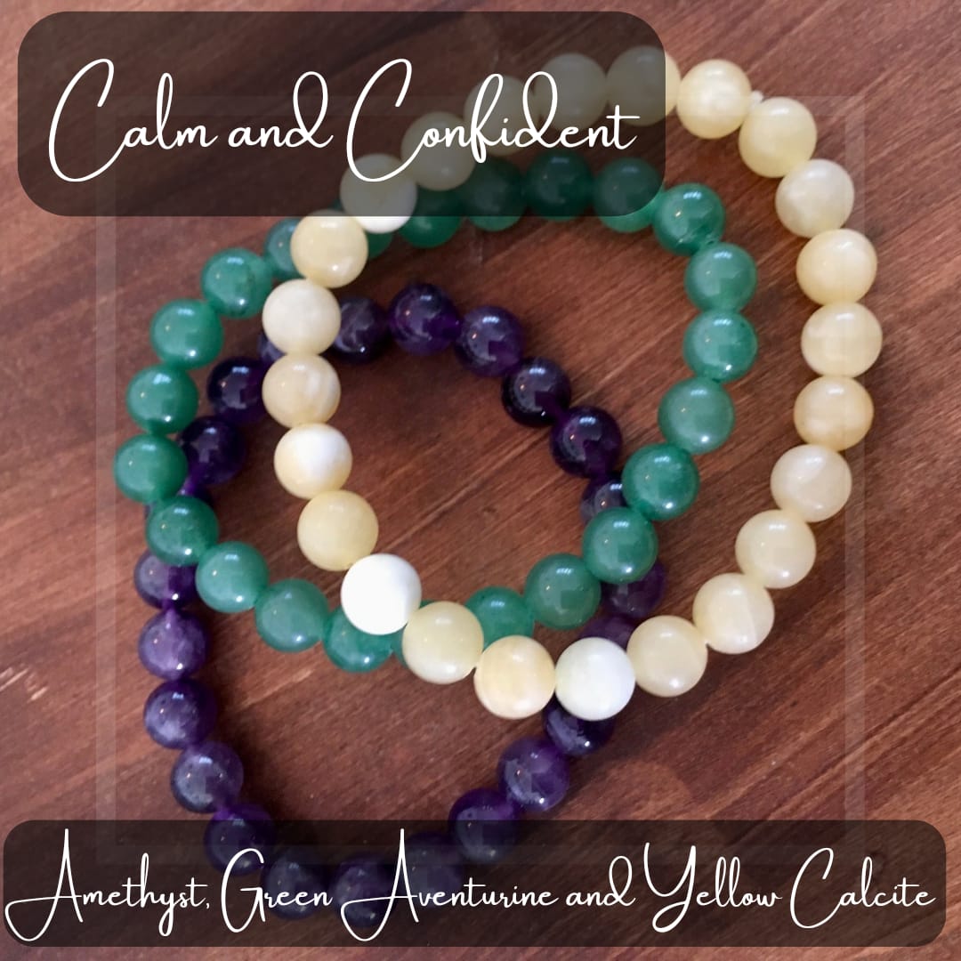 Unlock calm confidence and inner strength with our Serenity and Empowerment bundle, featuring Amethyst, Green Aventurine and Yellow Calcite stackable crystal bracelets.