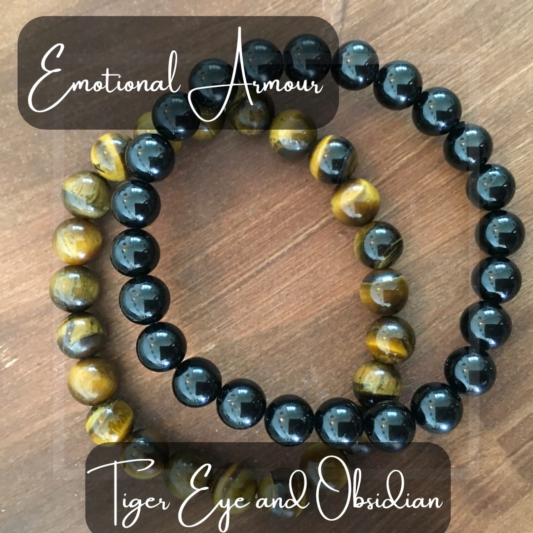 Experience emotional balance, resilience and abundance with our Emotional Armour bundle featuring Tiger Eye and Obsidian stackable crystal bracelets.