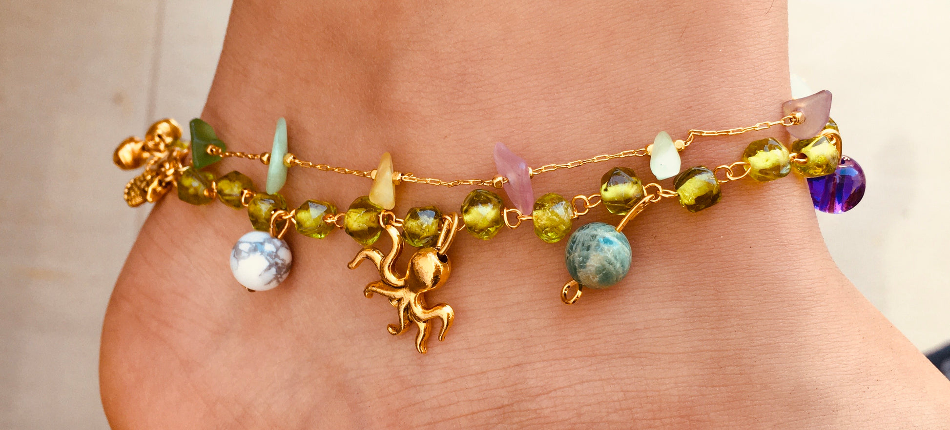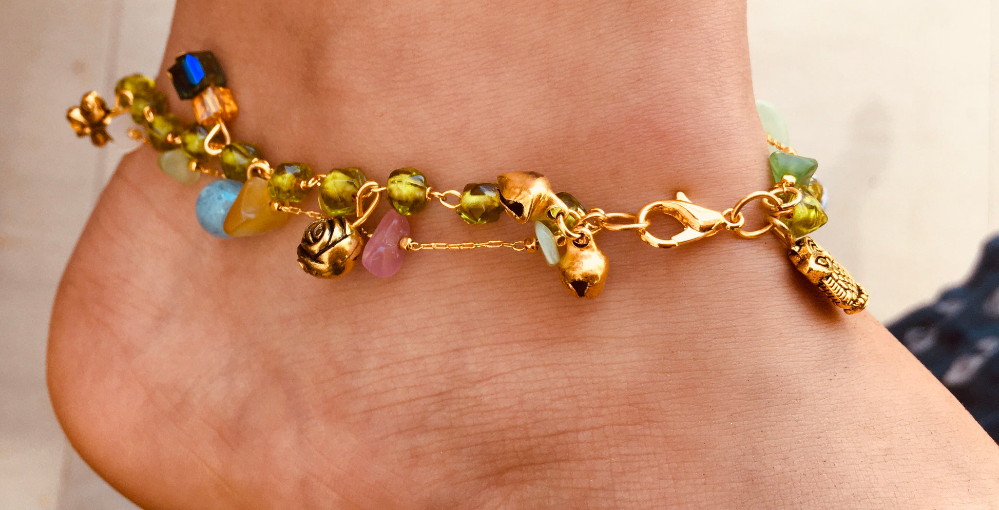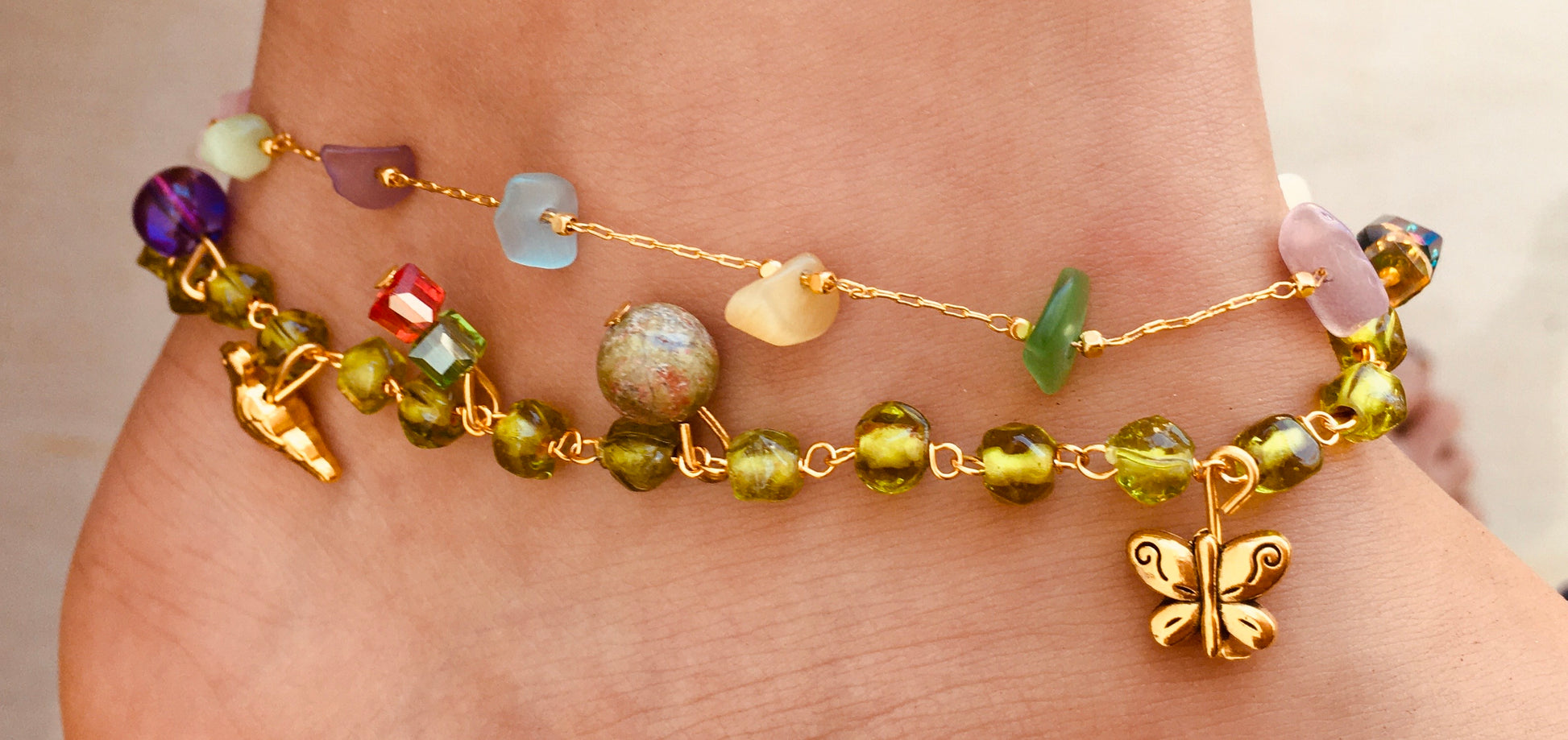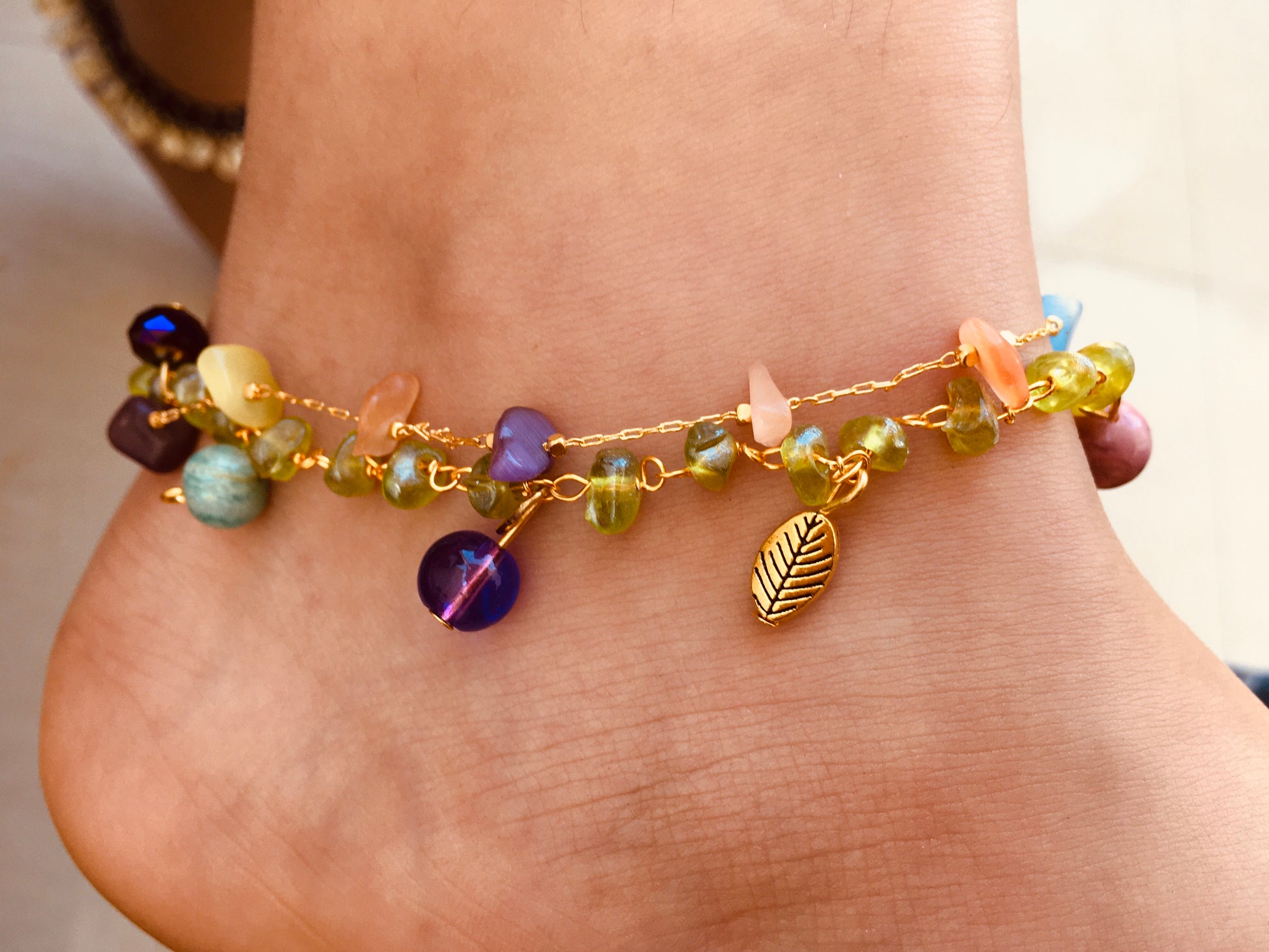 Take a walk on the wild side with our multi crystal, double strand anklet.