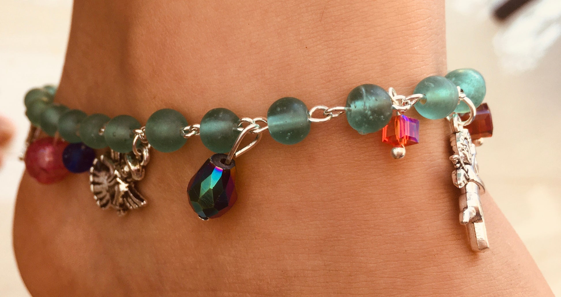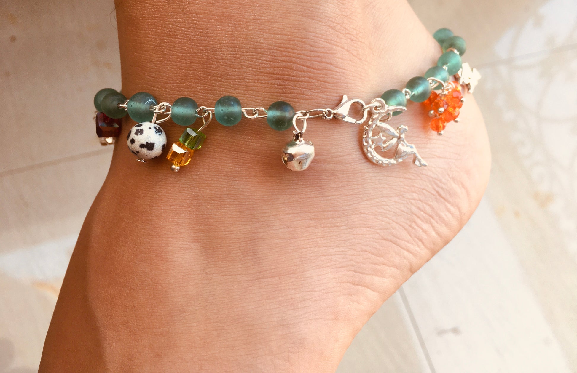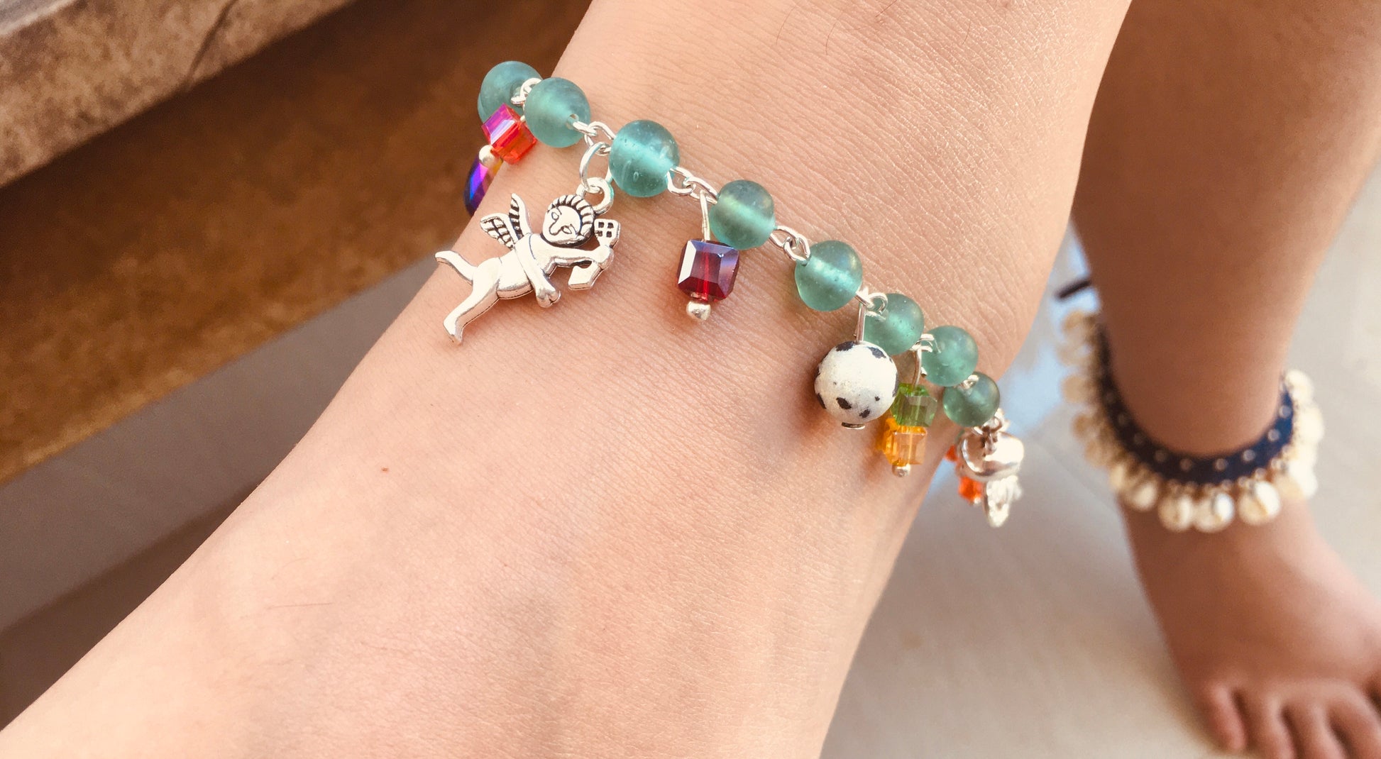 Dance into the day , with our green multi crystal anklet.