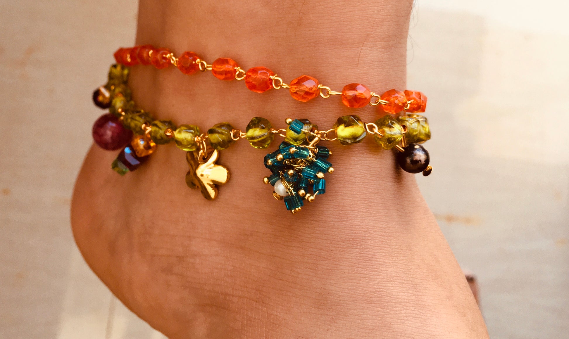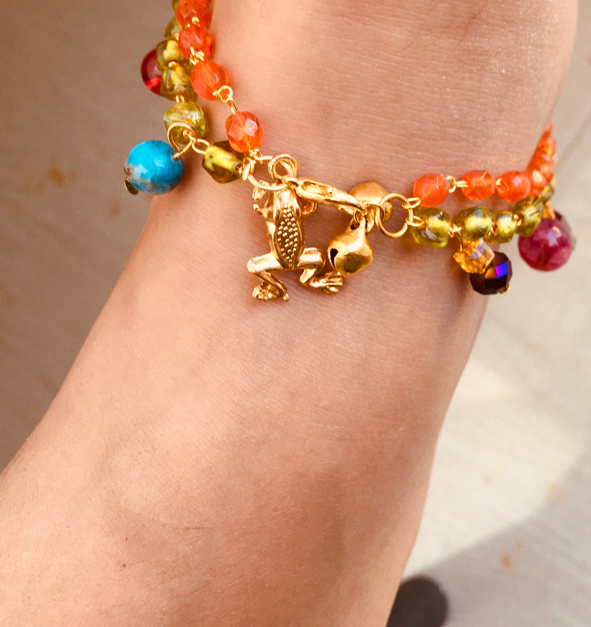 Spread a little sunshine wherever you go, with these gorgeous orange and blue , double strand , crystal anklet